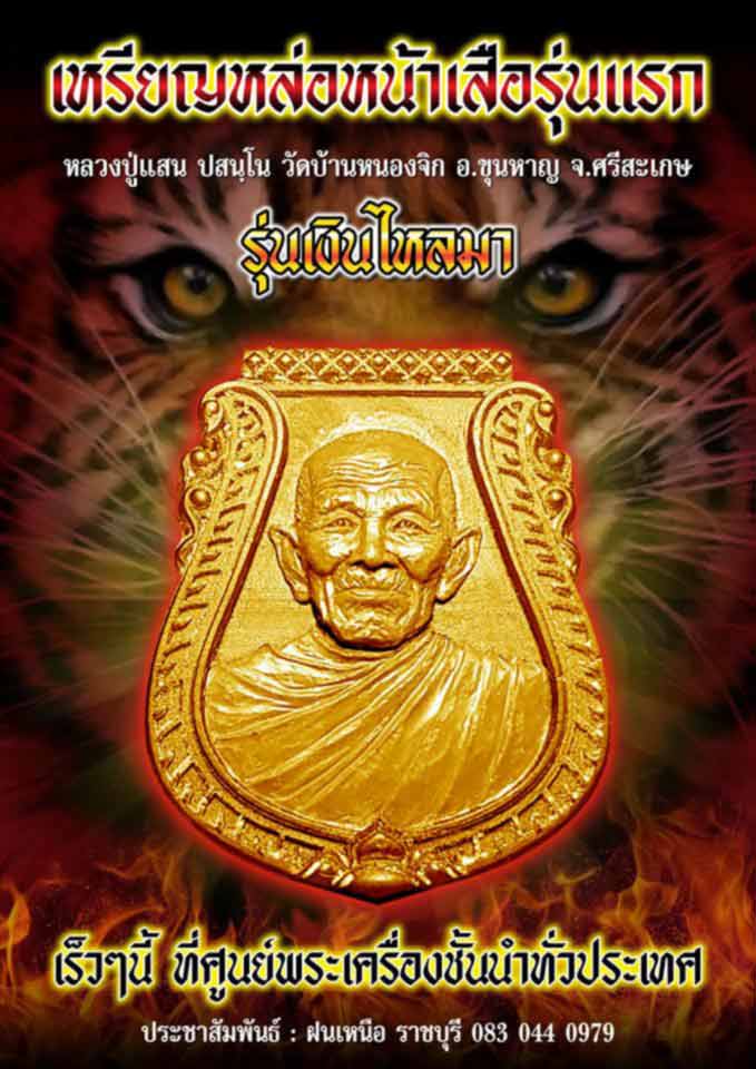 ตำนานบทใหม่ (รุ่นเงินไหลมา) ..รุ่น 1 ในแบบฉบับ เหรียญหล่อหน้าเสือ หลวงปู่แสน วัดหนองจิก กับงานต้นแบบก่อนหล่อตัวอย่างจริง งาน 85 % กับการปรับแต่งผลงานของนายช่าง ให้สวยและคม มาพร้อมกับรายการจัดสร้างที่ไม่มาก และน่าเล่นหาสะสม ในอนาคตข้างหน้าใครพลาดงานนี้มีเสียดายแน่เมื่อเห็นเหรียญจริง.....ขอฝากผลงานไว้ด้วยคับกับสายปู่แสน..และทุกทุกสายในการสะสมพระใหม่ |