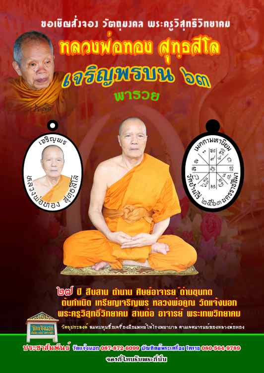 หลวงพ่อทอง สุทฺธสีโล อนุญาต ให้จัดสร้าง ในวาระพิเศษ เหรียญ รุ่นเจริญพรบนเมตตามหานิยม( พารวย )