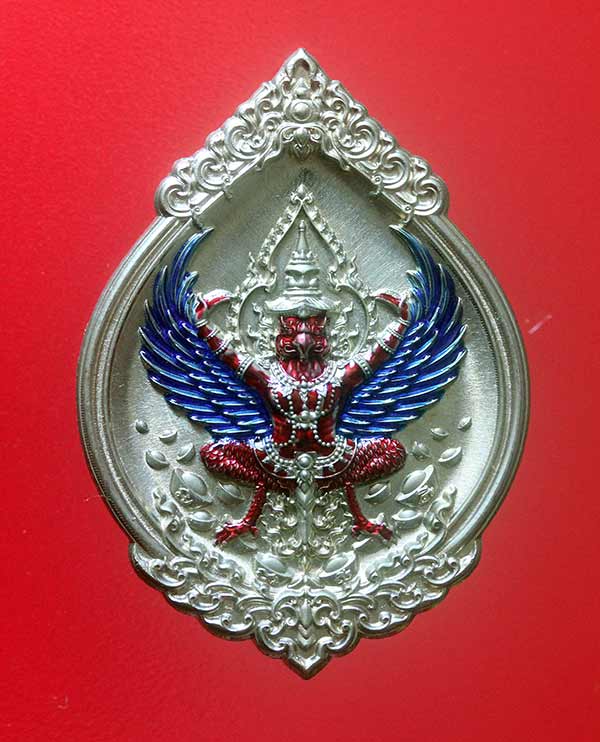 เนื้ออัลปาก้า ลงยาองค์ครุฑแดง + ปีกน้ำเงิน พญาครุฑ รุ่นดวงเศรษฐี หลวงพ่อรวย วัดมาบตาพุด