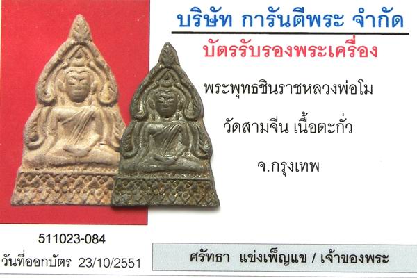 สมบัติผลัดกันชมครับ รายการนี้เป็นพระพุทธชินราช หลวงพ่อโม วัดสามจีน จ.สุพรรณบุรีครับ สภาพองค์พระพอใช้ได้ ไม่อายใคร ถึงจะไม่สวยมาก แต่จัดว่าเป็นพระแท้ดูง่าย แท้ทุกสนาม พิมพ์และตำหนิ ถูกต้องตามลักษณะ แถมมีดีที่ผิวครับ เปิดให้เช่าบูชาที่ 2,xxx บาท ครับ (สอง xxx บาท) ลองชม ลองพิจารณาดูกันนะครับ ราคาปิดแบบเผื่อออกต่ออยู่แล้วครับ ถ้าสนใจก็โทรคุยกันได้ หรือเมลสอบถาม รายละเอียดเพิ่มเติมได้ครับ ลองชม ลองพิจารณาดูนะครับ