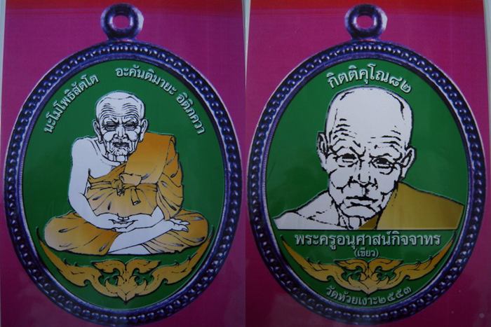 1 เหรียญรูปไข่หน้าหลวงปู่ทวดหลังหลวงปู่เขียว ชุดกรรมการ 99 ชุด 45,000 บ.