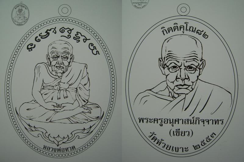 1 เหรียญรูปไข่หน้าหลวงปู่ทวดหลังหลวงปู่เขียว ชุดกรรมการ 99 ชุด ชุดละ 45,000 บ.