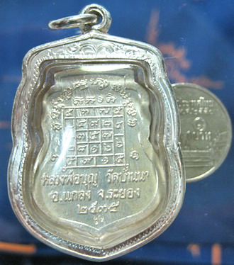 | หัวข้อกระทู้ : เหรียญเนื้อเงินหน้าทองคำ หลวงพ่อบุญ วัดบ้านนา ระยอง ปี 2535 เลี่ยมเงิน ตอกโค้ด บุญ สวยๆ ครับ |