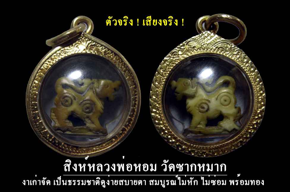 สิงห์หลวงพ่อหอม วัดซากหมาก เลี่ยมทอง พร้อมใช้ สวยสมบูรณ์ ไม่หัก ไม่ซ่อม งาเก่าธรรมชาติ ชาดที่ลงที่ตาเดิมๆแห้งๆ สิงห์ตัวนี้รับรองได้ครับ ไปไหนก็จบ เป็นยุคต้นๆของท่านครับ