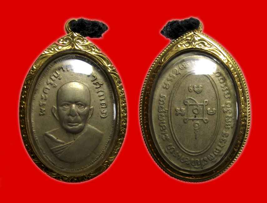 เหรียญหลวงพ่อแดง วัดเขาบันไดอิฐ รุ่นแจกแม่ครัว บล็อคตาไก่บ่าราง เลี่ยมทองพร้อมใช้