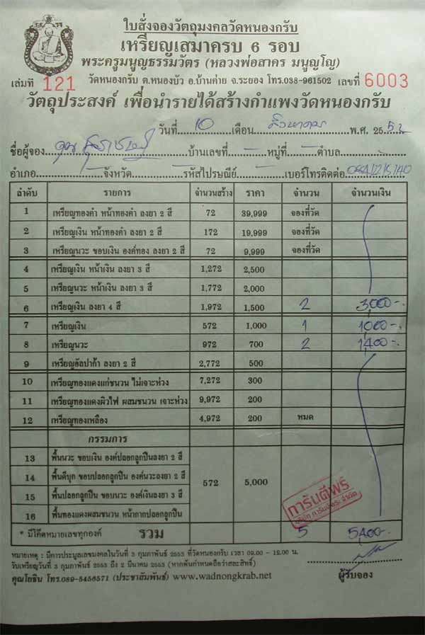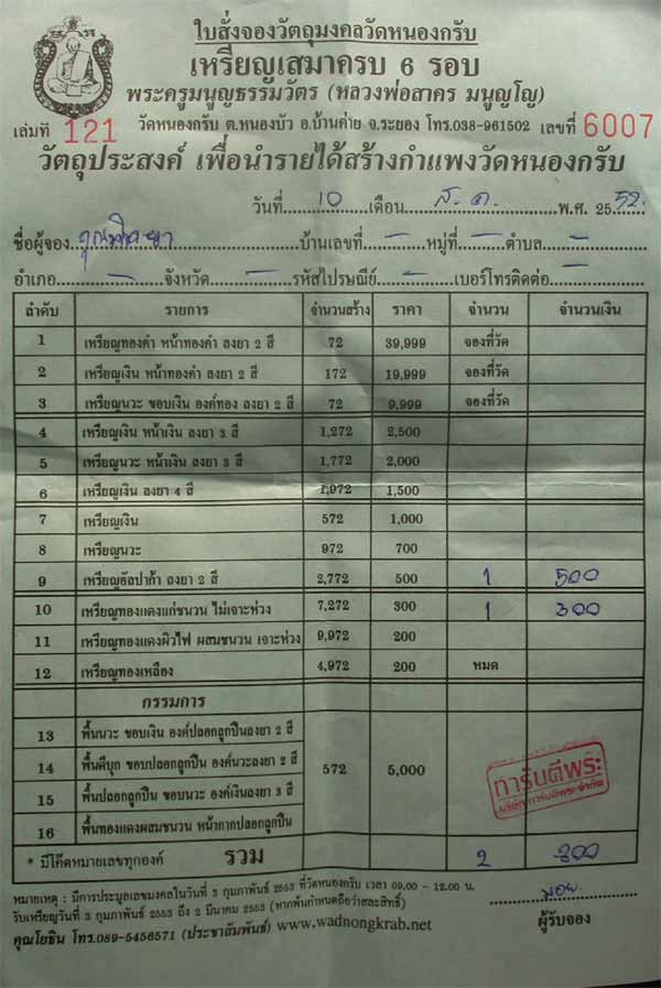 เมื่อเหรียญออกและได้รับเหรียญแล้ว จะส่งไปให้พร้อมใบจองจริง