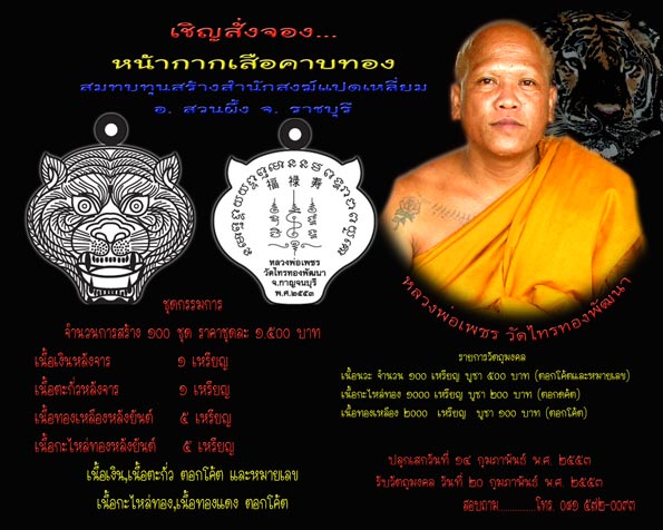 | หัวข้อกระทู้ : เปิดจอง...เหรียญหน้ากากเสือคาบทอง หลวงพ่อเพชร วัดไทรทองพัมนา จ. กาญจนบุรี |