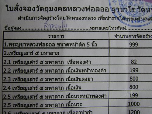 | หัวข้อกระทู้ : >>> ช่วงเช้ามีแบ่งจากใบจองให้คะ ... พระบูชาหลวงพ่อลออ ขนาดหน้าตัก 5 นิ้วคะ ... |