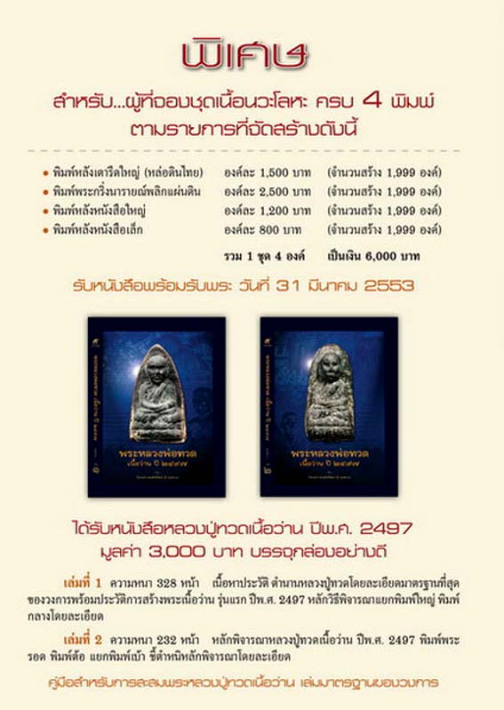พิเศษ!!..คุ้มสุด ๆ ครับ...สำหรับผู้จองเนื้อนวะ ครบ 4 พิมพ์ .จะได้รับหนังสือหลวงปู่ทวดเนื้อว่าน ปี 2497 ครับ...