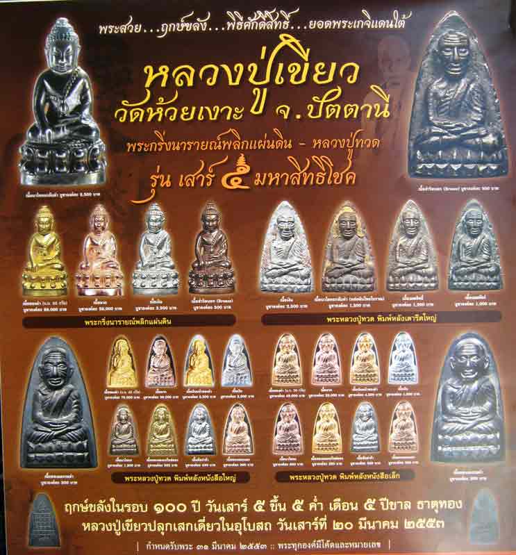 เปิดจองพระ ลพ.ทวด รุ่นเสาร์๕ มหาสิทธิโชค หลวงปู่เขียว วัดห้วยเงาะ ปัตตานี