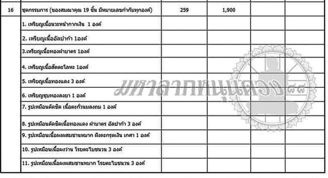 16.ชุดกรรมการ 19 องค์(12 เหรียญ,7 พระผง)(สร้าง 259 ชุด) ราคาจอง 1900 บาท 6 ชุด