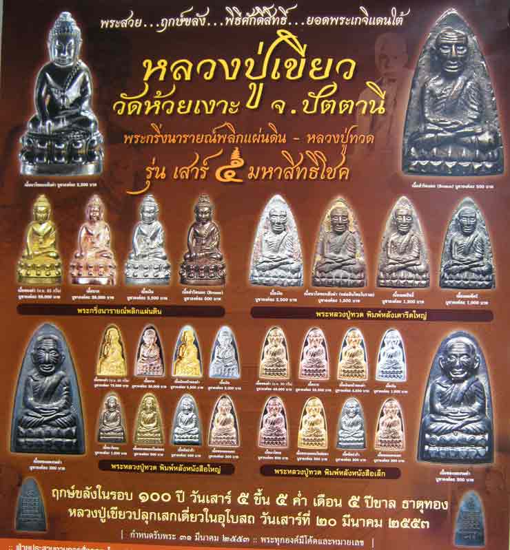 เปิดจองพระ ลพ.ทวด รุ่นเสาร์๕ มหาสิทธิโชค หลวงปู่เขียว วัดห้วยเงาะ ปัตตานี