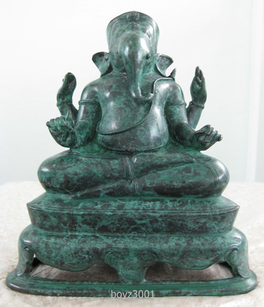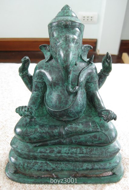 พระคเณศ (พิฆเณศ) โบสถ์พราหมณ์เมืองนครฯ หน้าตัก 5 นิ้ว ตอก code โอมอินเดียด้านหลัง หมายเลข 33 เนื้อสำริดเขียว จำลองจากแบบองค์จริง พิพิธภัณฑ์สถานแห่งชาตินครศรีธรรมราช จัดสร้างโดย พราหมณ์ตระกูลพรหมชาติ (ครบรอบพราหมณ์แจ้ง พรหมชาติ อายุ 99 ปี) พิธีสมโภชพุทธาเทวาภิเษก ณ พระอุโบสถ วัดสุทัศน์เทพวรารามราชวรมหาวิหาร วันอังคารที่ 8 ธันวาคม 2552