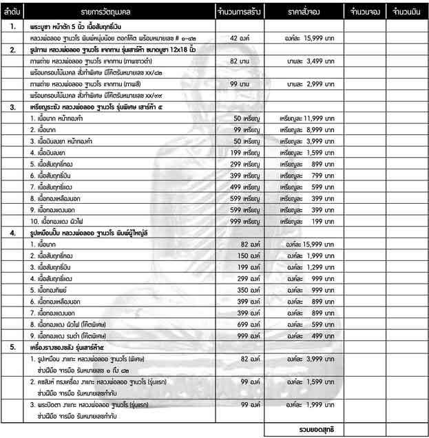 1. พระบูชา 5 นิ้ว เนื้อสัมฤทธิ์เงิน 42 องค์ 16,000 บาท มี 2 องค์