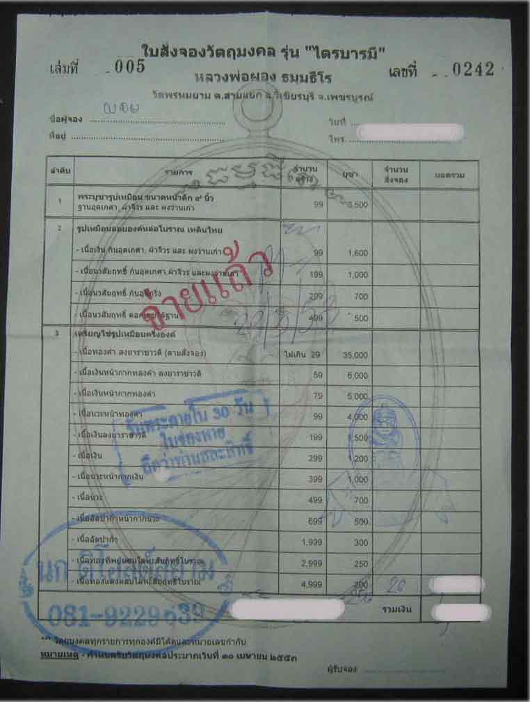 ใบจองตัวจริงรับพระเองได้เลยครับ