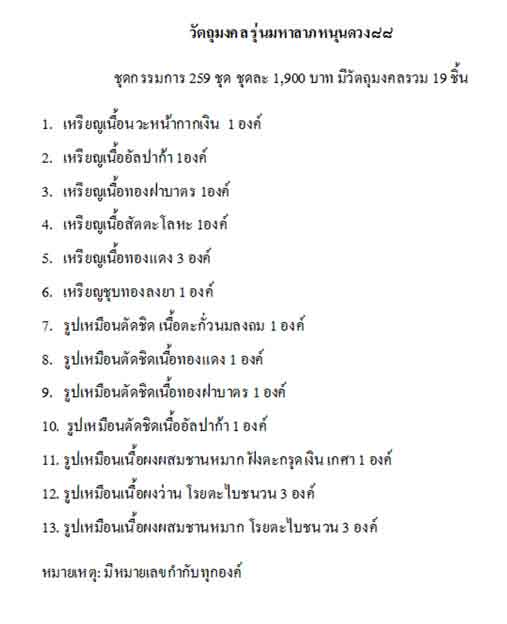 - ชุดกรรมการได้รับพระทั้งหมด 19 รายการ ตอนนี้ราคา X2 ทั้งนั้น ราคาชุดละ 3,600 บาท