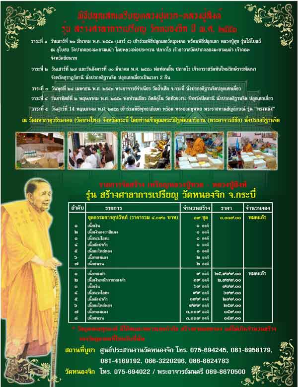 ราคาจองตามโบร์ชัวร์ ขอค่าส่งพระคิดตามจำนวนที่สั่งจอง ขั้นต่ำ 50 บาครับ |