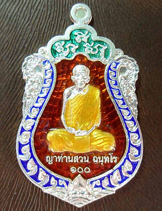 ด้านล่างมีเลข ๑๐๐ หมายถึงที่ระลึกครบ ๑๐๐ ปีของญาท่านสวน