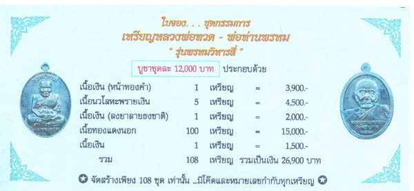 ได้รับพระ 108 เหรียญ มูลค่ารวม 26,900 บาท