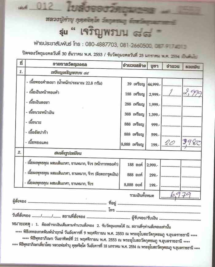 ได้ยอดเพิ่มมา ๘ ชุด ครับ เหรียญเจริญพรบน ๘๘ หลวงปูคำบุ คุตตะจิตโต แบ่งมาได้ ๘ ชุดๆละ ๖,๙๗๙ บาท
