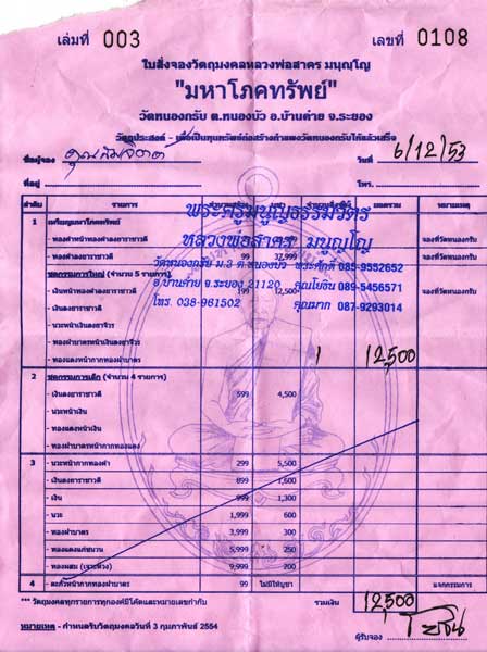 มีทั้งใบจองวัด และ ใบจองศูนย์ นะครับ ใบจองบางรายการยังไม่ได้สแกน ไว้ตอนเย็นจะสแกนลงมาให้ชมกัน แต่รับประกันว่าได้รับพระแน่นอน ไม่มีมั่วนิ่มครับ