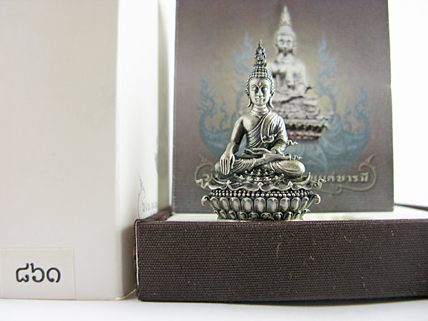 เป็นเนื้อเงินพิมพ์ใหญ่ .....ทุกอย่างครบ มีอุปกรณ์ครบชุด ปลายจีวรตรง พระเกศก็ตรง...พระสวยตามรูปครับ |