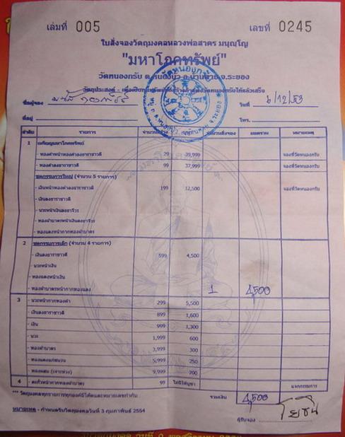 2.ใบจอง เหรียญมหาโภคทรัพย์ ชุดกรรมการผ้าป่า(ใบจองวัด) มี 2 ใบๆละ 3,250 บ.
