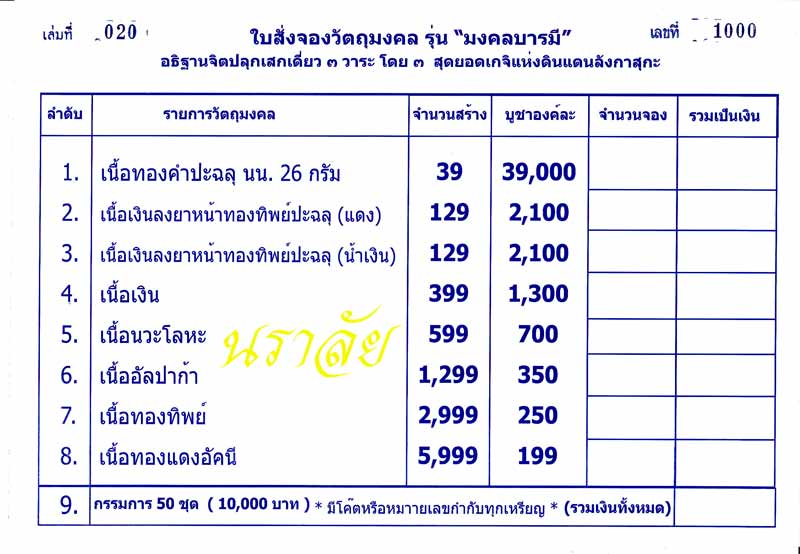รายการพระเครื่องที่เปิดจอง..