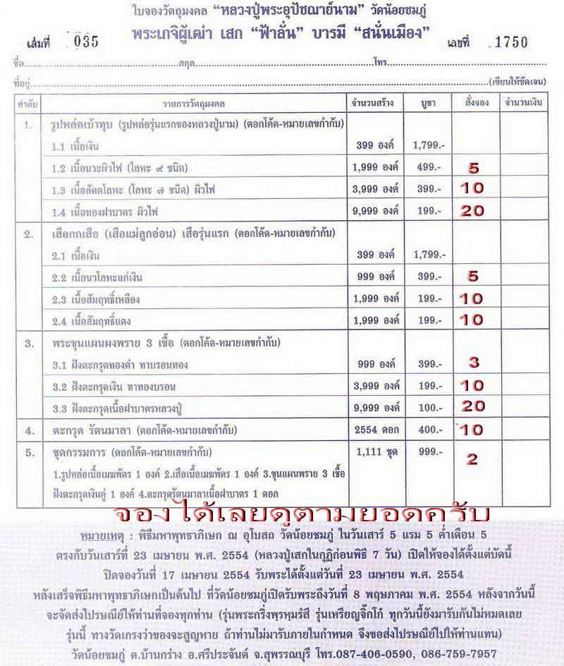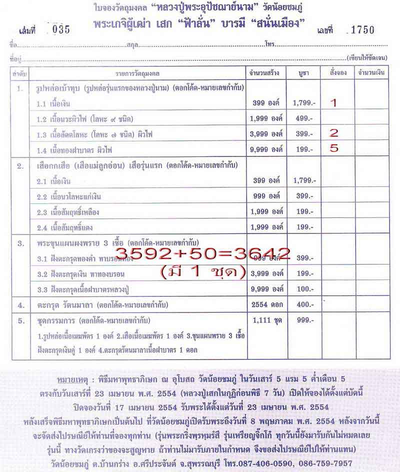 ลงชื่อจองในกระทู้ได้เลยครับ หรือมาจองหน้าร้านก็ได้ครับ สำหรับคนที่จองในกระทู้ กรุณาโอนเงินภายใน 48 ชั่วโมง มิฉะนั้นจะถือว่าสละสิทธิ์ ขอบคุณมากครับ จองกับนัทได้รับพระแน่นอน (อย่าลืมบวกค่าจัดส่ง 50 บาท) |