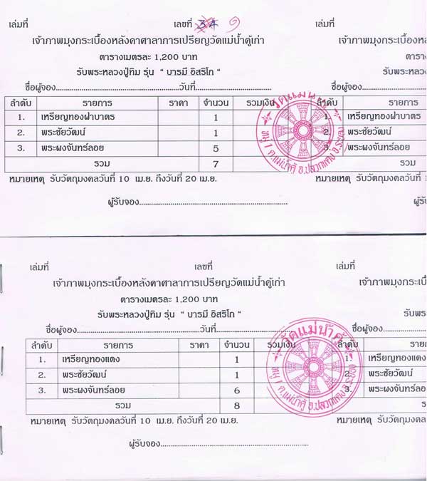 เนื่องจากได้มีผู้สนใจติดต่อไปทางวัดมากต้องการจะร่วมทำบุญ แต่ชุดกรรมการกระเบื้องหมดแล้ว ทางวัดจึงจัดเหรียญที่กันไว้ส่วนหนึ่งมาจัดเป็นชุด เพื่อให้ร่วมทำบุญกระเบื้อง 1 ตารางเมตร (1200 บาท) จัดเป็น 2 ชุด
