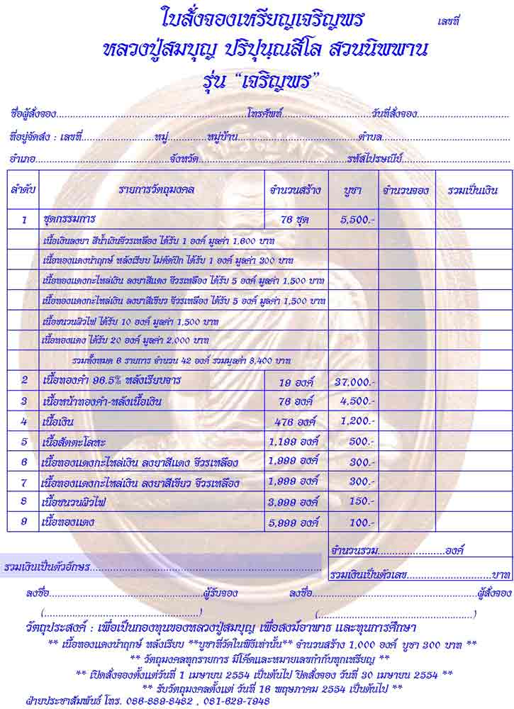 5 เนื้อสัตตะโลหะ สร้าง 1,200 เหรียญ ๆ ละ 500 บ.(ยอดที่เปิดจอง 20 เหรียญ)