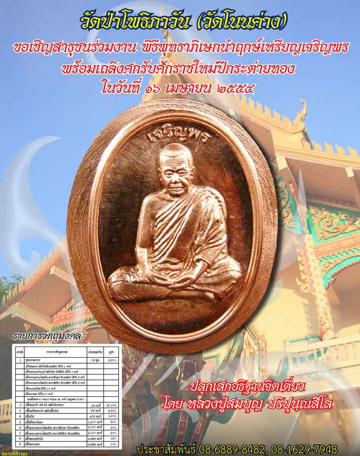 เนื้อทองแดงนำฤกษ์ หลังเรียบ **บูชาที่วัดเท่านั้น** วัดโนนค่าง โคราช วันที่ 16 เม.ย 54 สร้าง 1,000 เหรียญ ๆ ละ 300 บ. รายการนี้ปิดรับฝากวันที่ 12 เม.ย. 2554