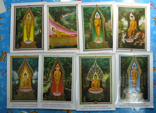 " ภาพพิมพ์เก่า พระประจำวันทั้ง 7 วัน " พิมพ์ที่ USA แท้ ปี 2500 ""ลายน้ำทองสวยมาก หายากสุด ๆ ๆครบชุด 8 ใบ ครับ (เอาไปฝากผู้ใหญ่ หรือจะถวายวัดก็ดีครับ)