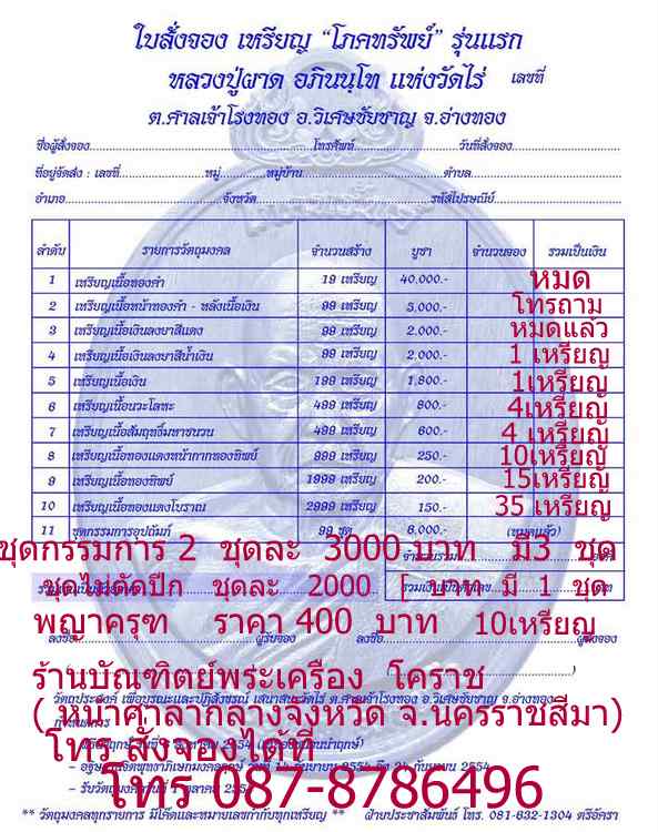 1. เนื้อทองคำ สร้าง 19 เหรียญ 40,000 บ. หมด