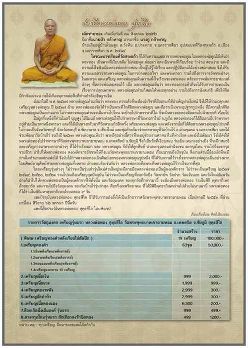 1. เหรียญเนื้อเงิน.........................สร้าง 999 เหรียญๆ ละ 2,000 บาท…………….มียอด 10 เหรียญ