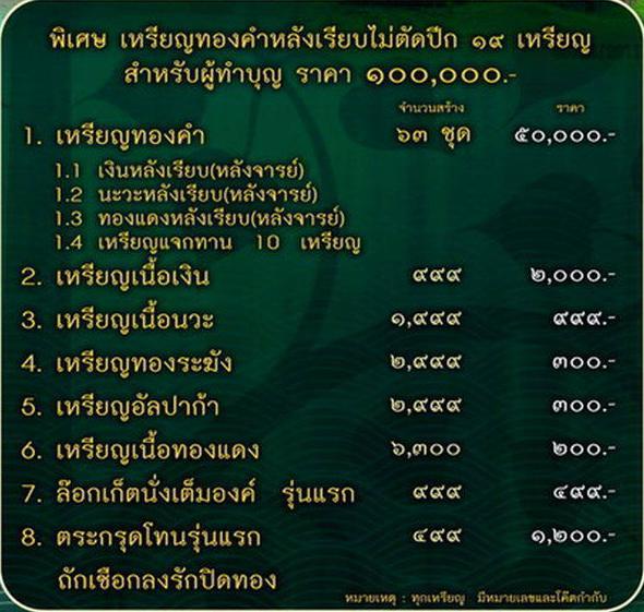 1. เหรียญเนื้อเงิน สร้าง 999 เหรียญๆ ละ 2,000 บาท มียอด 25 เหรียญ