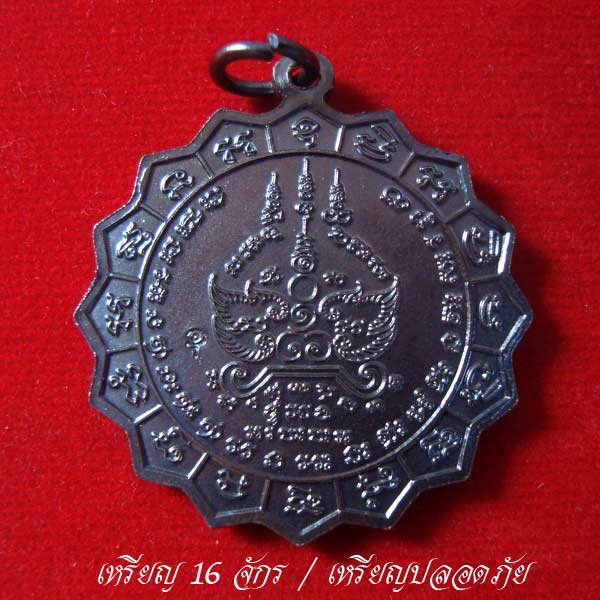 จากภาพ : เหรียญต้นแบบของเหรียญ 16 จักร คือ "เหรียญกงจักรหลวงพ่อแช่ม" วัดตาก้อง ซึ่งตอนนี้เช่าบูชากันมูลค่าค่อนข้างสูงครับ