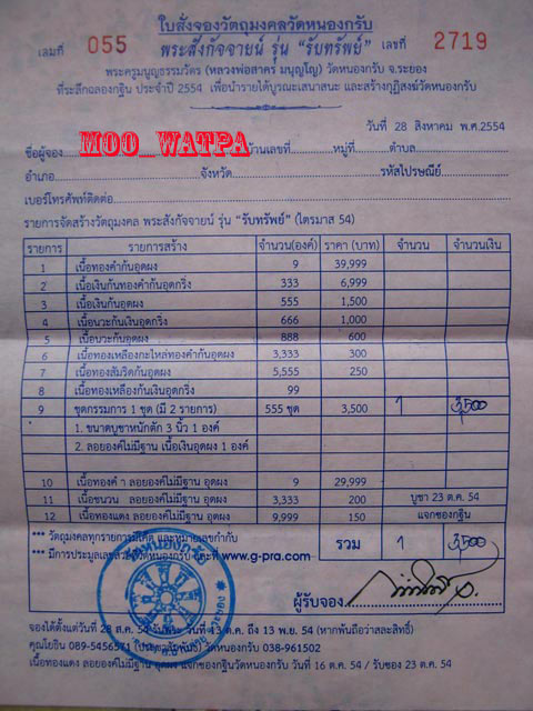 ส่งใบจองให้ฟรีถึงหน้าบ้านไปรับพระเองเด้อ