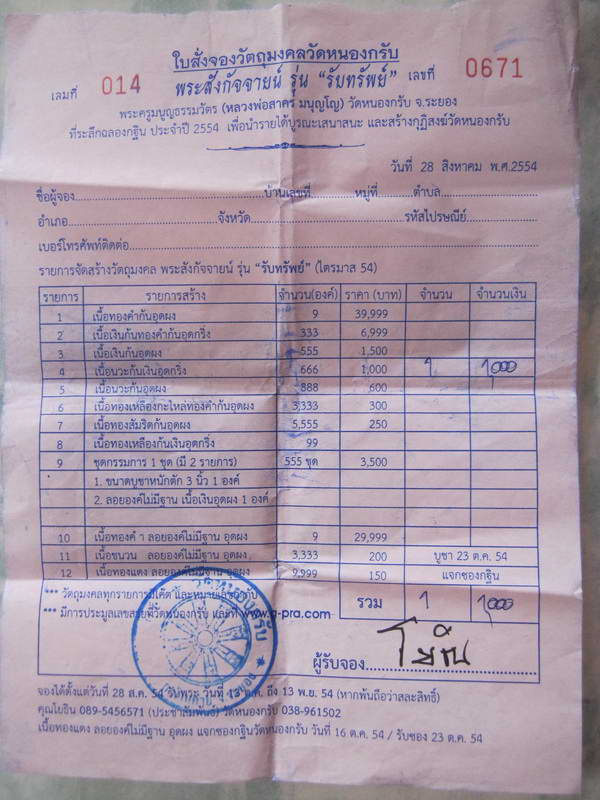 ส่งใบจองให้นำไปรับพระเอง หรือ ให้รับพระให้แล้วจัดส่ง ก็ได้