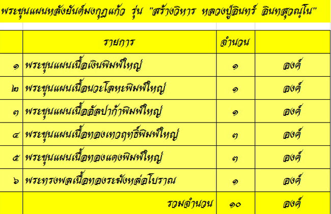 พระขุนแผนหลังยันต์มงกุฎแก้ว รุ่น " สร้างวิหาร หลวงปู่อินทร์ อินทสุวณฺโน "