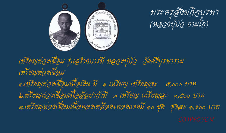 รูปเหมือนปั้ม เนื้อทองเหลือง+ทองแดง มี ๑๐ ชุด ชุดละ ๑,๕๐๐ บาท
