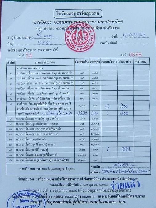 .ปิดตาหลังแบบ รายการที่7 ในใบจอง 3 องค์