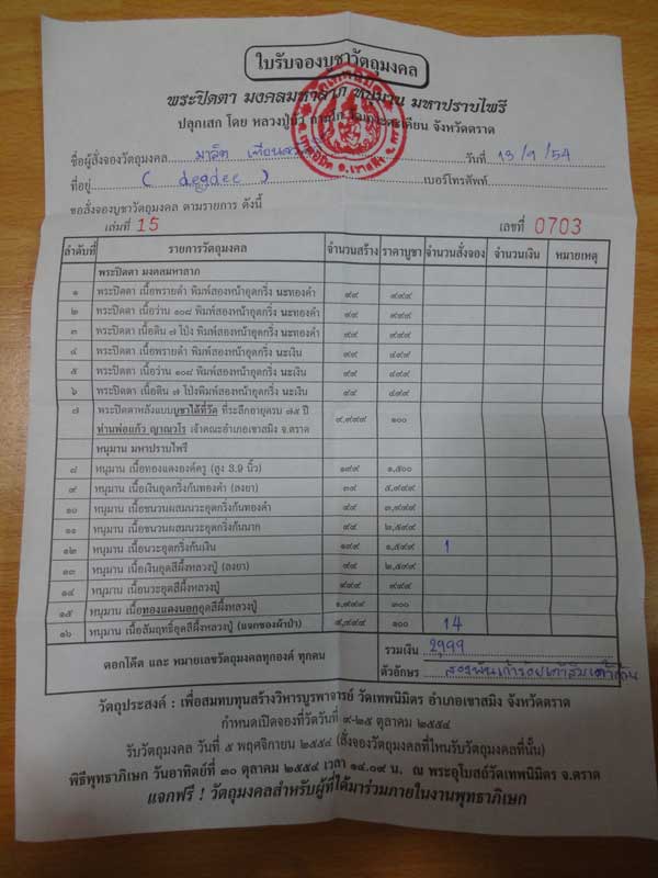 จัดส่งใบจองฟรี (ถ้าให้ส่งหนุมานให้หลังรับจากศูนย์ คิดค่าส่ง 100 บาท)