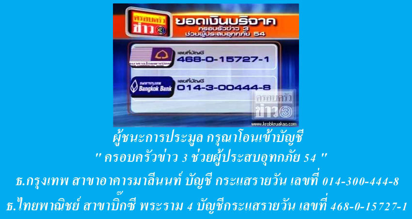 **** โอนเงินเข้าบัญชีช่วยเหลือน้ำท่วมโดยตรงเลยครับ ******