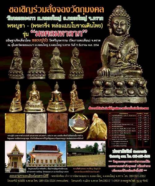 1 พระบูชาพิมพ์พระประธานในโบสถ์ ขนาด 5 นิ้ว เนื้อทองเหลืองขัดเงา สร้าง 209 องค์ องค์ละ 2,499 บ. มียอด 2 องค์