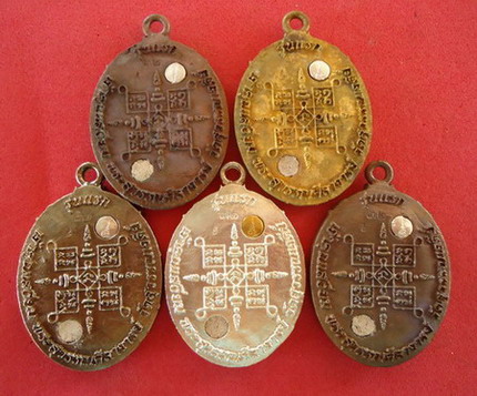 4.เนื้อทองระฆังแช่น้ำมนต์ ฝังหัวนะโมเงิน 1 เหรียญ
