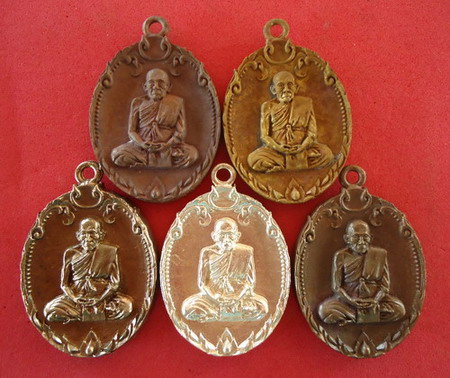 5.เนื้อทองแดงผิวไฟแช่น้ำมนต์ฝังหัวนะโมเงิน1เหรียญ