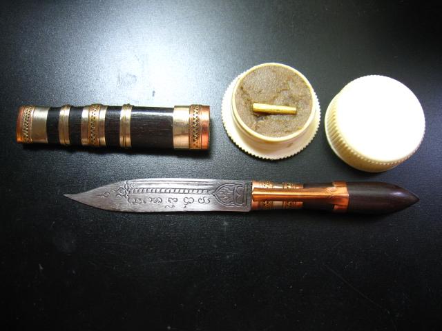 มีดหมอ+สีผึ้ง รุ่นแรก เจ้าคุณเสงี่ยม วัดสุวรรณเจดีย์ อยุธยา ปลุกเสกไตรมาส 54 สร้างเพียง 300 เล่ม เท่านั้นครับ