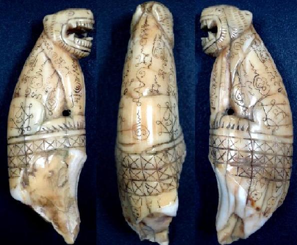 เขี้ยวหมีแกะเสือ หลวงพ่อนก วัดสังกะสี จ.สมุทรปราการ ศิษย์ผู้ที่ได้รับการถ่ายทอดวิชาปลุกเสกเสือจากหลวงพ่อปาน คลองด่านหรือบางเหี้ย ท่านปลุกเสกจนเสือกระโดดออกจากบาตร จนหลวงพ่อปานต้องออกปากชม เสือของหลวงพ่อนกส่วนใหญ่ที่พบจะเป็นเขี้ยวหมีที่เป็นเขี้ยวเสือก็มีครับแต่หายาก ศิลปก็มีหลายลักษณะแต่ชิ้นนี้เป็นยันต์ครูเต็มๆครับ รอยจาร คม ชัด ลึก ยันต์พระพุทธที่ใครๆก็ถามหามีมาให้ถึง3องค์ครับ แตชิ้นนี้ต้องบอกว่าเก็บไว้ใช้และโชว์ดีที่สุดครับ เพราะเขี้ยวไม่สมบูรณ์มาแต่เดิม เขี้ยวมีรอยรานตามอายุ ถ้าชิ้นนี้สมบูรณ์ต้องมีเกือบ2หมื่นครับ แท้ตาเปล่า ดูง่ายจริงๆครับ เห็นของเล่นกันมามาก ชิ้นนี้ของจริงอย่าสับสนนะครับ ไม่แพงครับ สนใจลองสอบถามได้ครับ รับประกันแท้