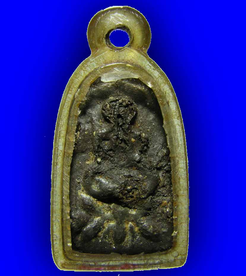 พระเลี่ยมพลาสติกมาเก่ามาก ถูกฝนพลาสติกหน้าหลังออกดังภาพค๊าบบ หลังสวยมาก รอยจารเต็ม4แถว หายากมาก